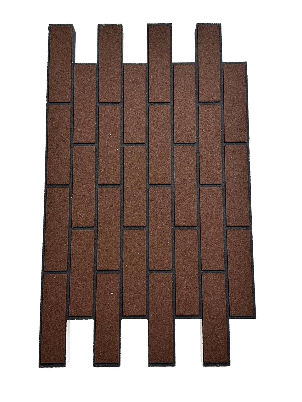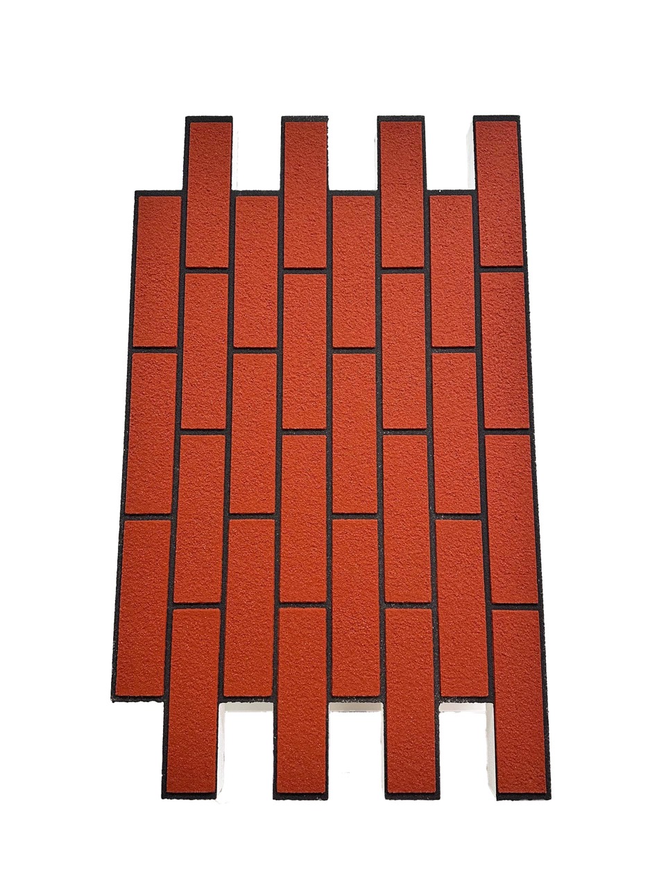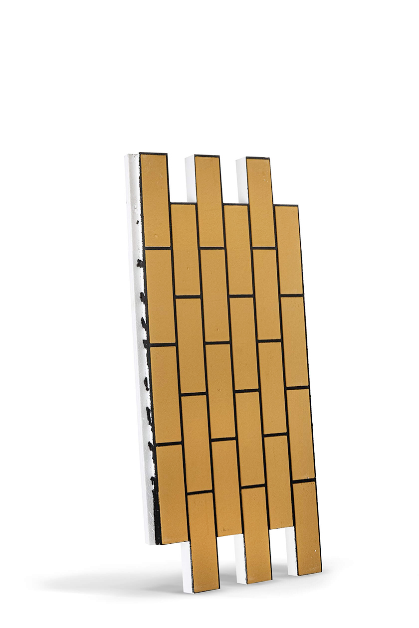Армирующим покрытием панели является монолитный состав. Наши "кирпичики" не наклеены, а залиты по особой технологии, где образуют однородное покрытие. Отделить "кирпичики" от панели невозможно!
